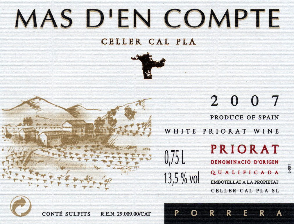 One of only a handful of White Priorats: big, full and complex. Fermentation in 3,000-litre capacity oak barrels for 15 days on the skins. Each variety is then aged separately on its lees in 80% new French Allier oak and 20% American oak for 6 months. The coupage follows and the wine is bottled in a Burgundy style bottle. 13.5% abv. Splendid, enticing complex nose of honeyed pear and apple, pineapples, kiwi, cocoa, apricots, toasted minerals, very full and buttery on the palate with a concentrated and rich texture of fleshy pineapple, peach fruits, minerals and toastiness, perfectly assembled with a good acidity and magnificent lingering finish. Spain’s popular national newspaper, El País: 'the