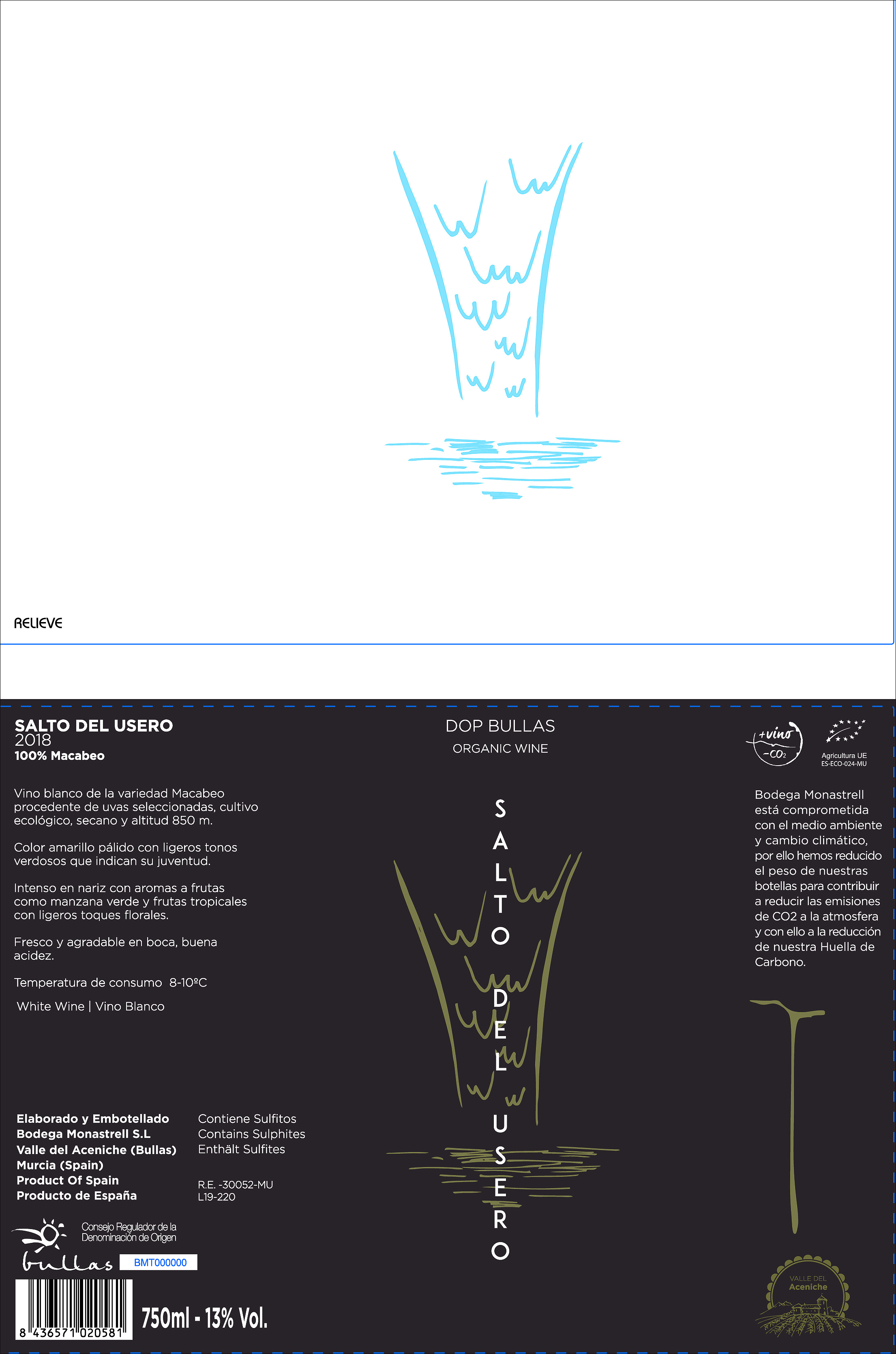 Carefully-selected 100% Organic Macabeo from 30 year old, dry-farmed, bush vines sourced from cool 850m high-altitude vineyards, harvested at night early September. Traditional method, contact with skins for 4 hours and then must fermented at low temperature for over 30 days followed by 4-6 months on fine lees with regular batonnage. Fresh and crisp acidity with intense fruitiness of citrus, lime, green apple and pineapple and a persistent finish. Perfect match for grilled salmon, seared scallops, chicken, summer salad.