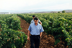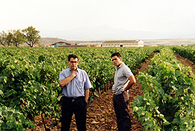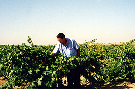 | At the bodega | Nicholas inspects the grapes | More vines in the sunshine.... | |||
