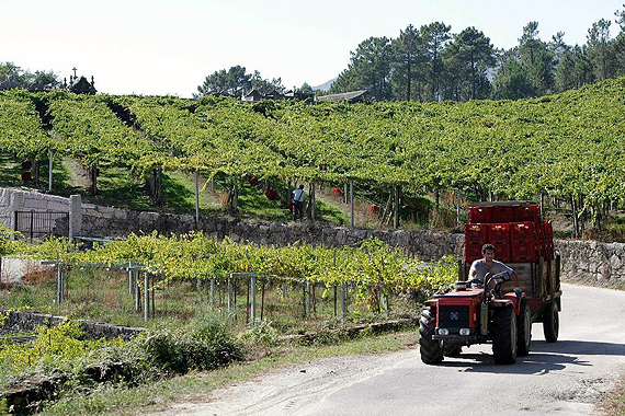 The harvested grapes are collected