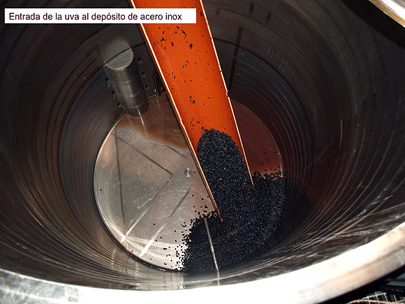 Grapes entering the stainless steel tanks